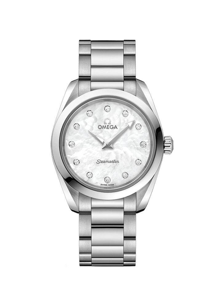 Die Seamaster Aqua Terra für Damen ist von Diamanten umgeben und ein wahrer Ausdruck von Eleganz.