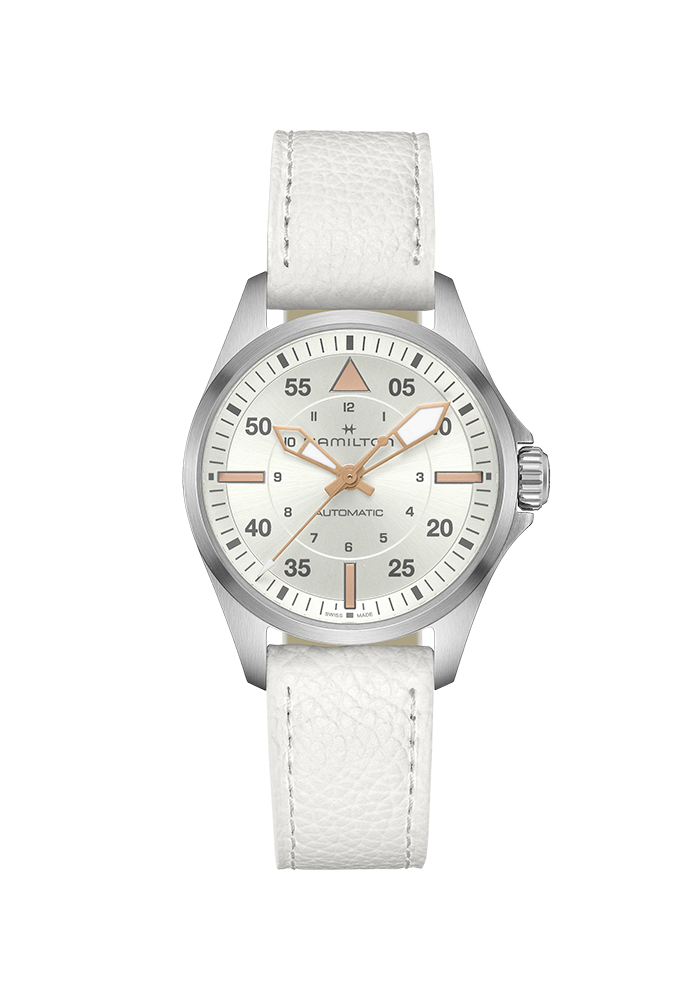 Bereits in über 400 Kinofilmen traten Uhrenmodelle von Hamilton auf. Diese enge Verbundenheit mit dem Hollywood Filmbusiness ist auch in den Uhren der Kollektion American Classics zu sehen: elegante Herrenuhren und glamouröse Hamilton Damenuhren. Die Hamilton Quarzuhren der Serie Broadway zelebrieren die Verbundenheit mit der geradlinigen Architektur von Manhattan. Eine Reminiszenz an die amerikanische Jazzlandschaft ist die Hamilton Jazzmaster Serie. Die Fliegeruhren versammelt Hamilton unter den Kollektionsnamen Hamilton Khaki Field, Hamilton Khaki Aviation und Hamilton Khaki Navy. Während die erste durch robuste Machart und elegantes Design überzeugt, weist Hamilton Khaki Aviation dezidierte Pilotenfunktionen in den Automatikuhren auf und Navy vereint Funktionen für Unterwasseraktivitäten. Die Hamilton Ventura ist bestimmt das ungewöhnlichste aller Modelle, weist es doch ein dreieckiges Gehäuse auf. Das Originalmodell stammt aus dem Jahr 1957, das als erste batteriebetriebene elektrische Uhr in die Geschichte einging. In allen von der amerikanischen Kultur inspirierten Uhrenmodellen von Hamilton tickt Schweizer Präzision. Entdecken Sie die ikonischen Uhren bei Bijouterie Bläuter in Thun!