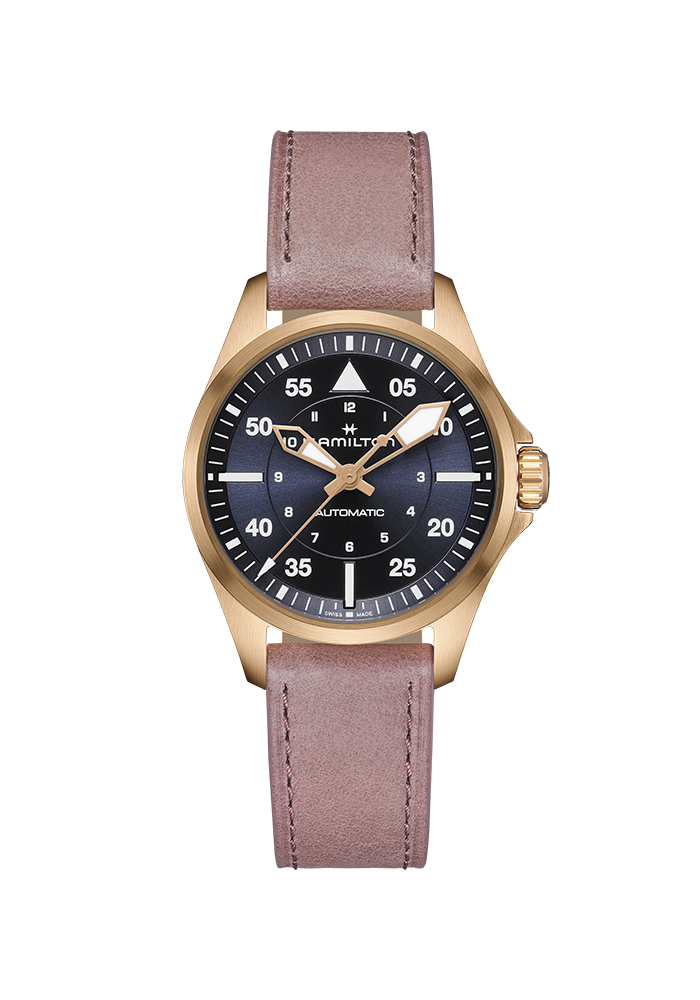 Bereits in über 400 Kinofilmen traten Uhrenmodelle von Hamilton auf. Diese enge Verbundenheit mit dem Hollywood Filmbusiness ist auch in den Uhren der Kollektion American Classics zu sehen: elegante Herrenuhren und glamouröse Hamilton Damenuhren. Die Hamilton Quarzuhren der Serie Broadway zelebrieren die Verbundenheit mit der geradlinigen Architektur von Manhattan. Eine Reminiszenz an die amerikanische Jazzlandschaft ist die Hamilton Jazzmaster Serie. Die Fliegeruhren versammelt Hamilton unter den Kollektionsnamen Hamilton Khaki Field, Hamilton Khaki Aviation und Hamilton Khaki Navy. Während die erste durch robuste Machart und elegantes Design überzeugt, weist Hamilton Khaki Aviation dezidierte Pilotenfunktionen in den Automatikuhren auf und Navy vereint Funktionen für Unterwasseraktivitäten. Die Hamilton Ventura ist bestimmt das ungewöhnlichste aller Modelle, weist es doch ein dreieckiges Gehäuse auf. Das Originalmodell stammt aus dem Jahr 1957, das als erste batteriebetriebene elektrische Uhr in die Geschichte einging. In allen von der amerikanischen Kultur inspirierten Uhrenmodellen von Hamilton tickt Schweizer Präzision. Entdecken Sie die ikonischen Uhren bei Bijouterie Bläuter in Thun!