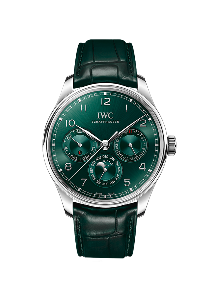 | Funktionen | Datum, Vollkalender, Wochentag, Kleine Sekunde, Jahreskalender, Monatsanzeige, Dreizeiger, Mondphase, Ewiger Kalender |