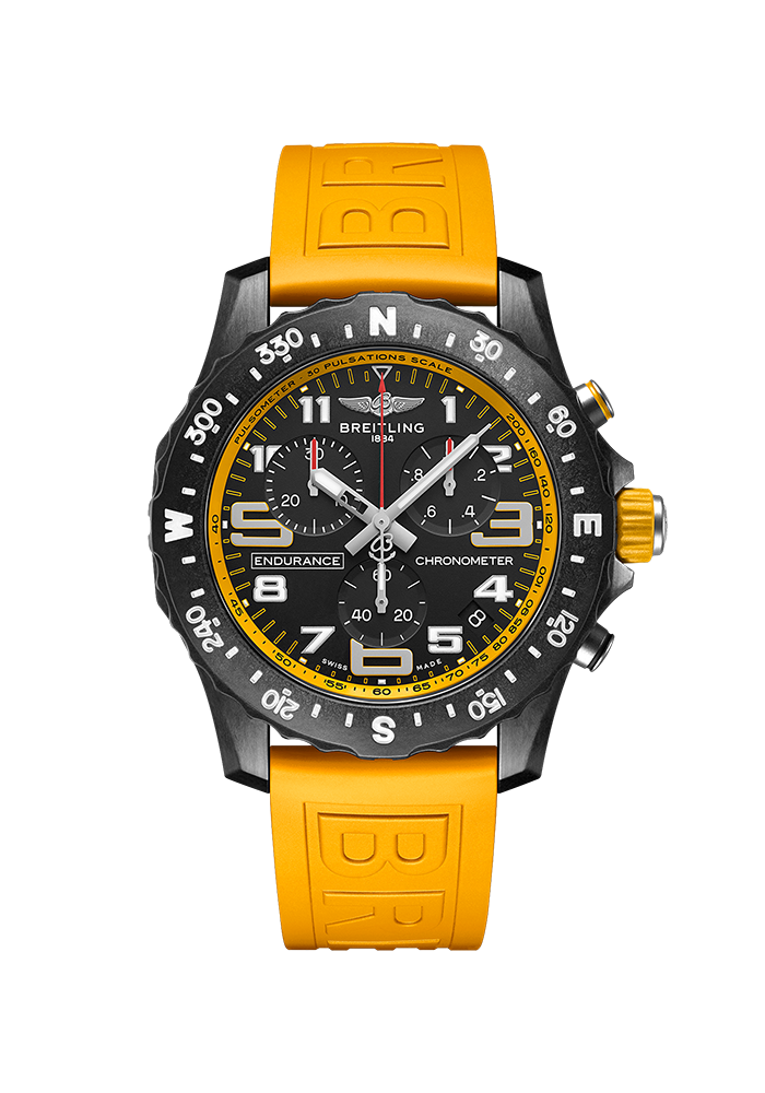 | Zifferblatt | schwarz mit gelbem Pulsometer Ring |