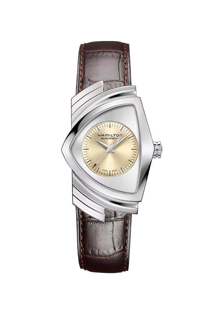 Bereits in über 400 Kinofilmen traten Uhrenmodelle von Hamilton auf. Diese enge Verbundenheit mit dem Hollywood Filmbusiness ist auch in den Uhren der Kollektion American Classics zu sehen: elegante Herrenuhren und glamouröse Hamilton Damenuhren. Die Hamilton Quarzuhren der Serie Broadway zelebrieren die Verbundenheit mit der geradlinigen Architektur von Manhattan. Eine Reminiszenz an die amerikanische Jazzlandschaft ist die Hamilton Jazzmaster Serie. Die Fliegeruhren versammelt Hamilton unter den Kollektionsnamen Hamilton Khaki Field, Hamilton Khaki Aviation und Hamilton Khaki Navy. Während die erste durch robuste Machart und elegantes Design überzeugt, weist Hamilton Khaki Aviation dezidierte Pilotenfunktionen in den Automatikuhren auf und Navy vereint Funktionen für Unterwasseraktivitäten. Die Hamilton Ventura ist bestimmt das ungewöhnlichste aller Modelle, weist es doch ein dreieckiges Gehäuse auf. Das Originalmodell stammt aus dem Jahr 1957, das als erste batteriebetriebene elektrische Uhr in die Geschichte einging. In allen von der amerikanischen Kultur inspirierten Uhrenmodellen von Hamilton tickt Schweizer Präzision. Entdecken Sie die ikonischen Uhren bei Bijouterie Bläuter in Thun!