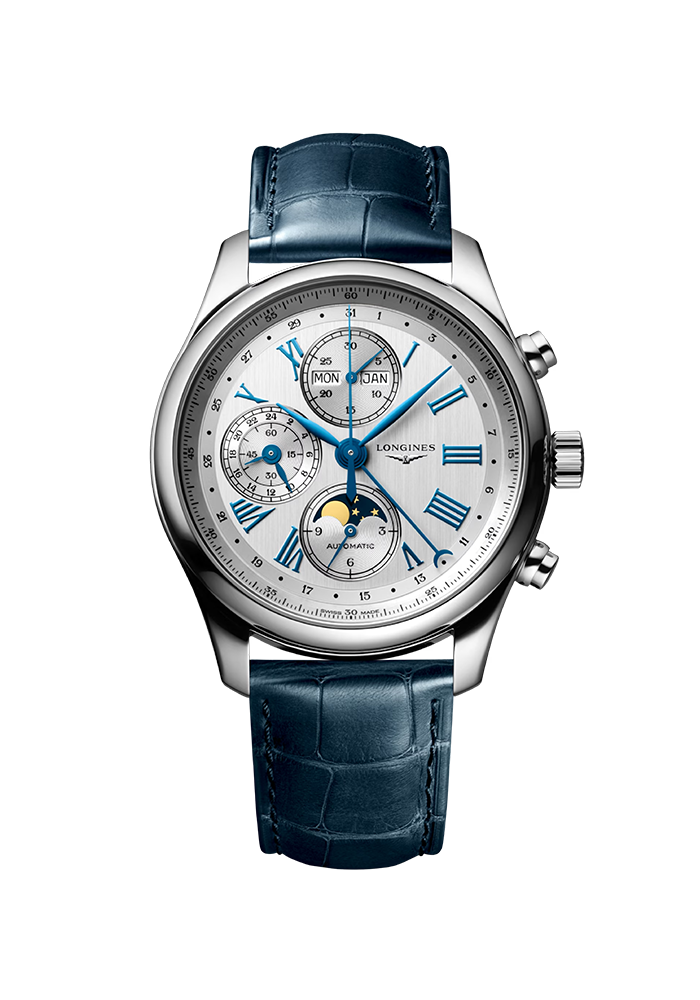 | Funktionen | Monatsanzeige, Chronograph, Mondphase, Datum, Wochentag, Kleine Sekunde |
