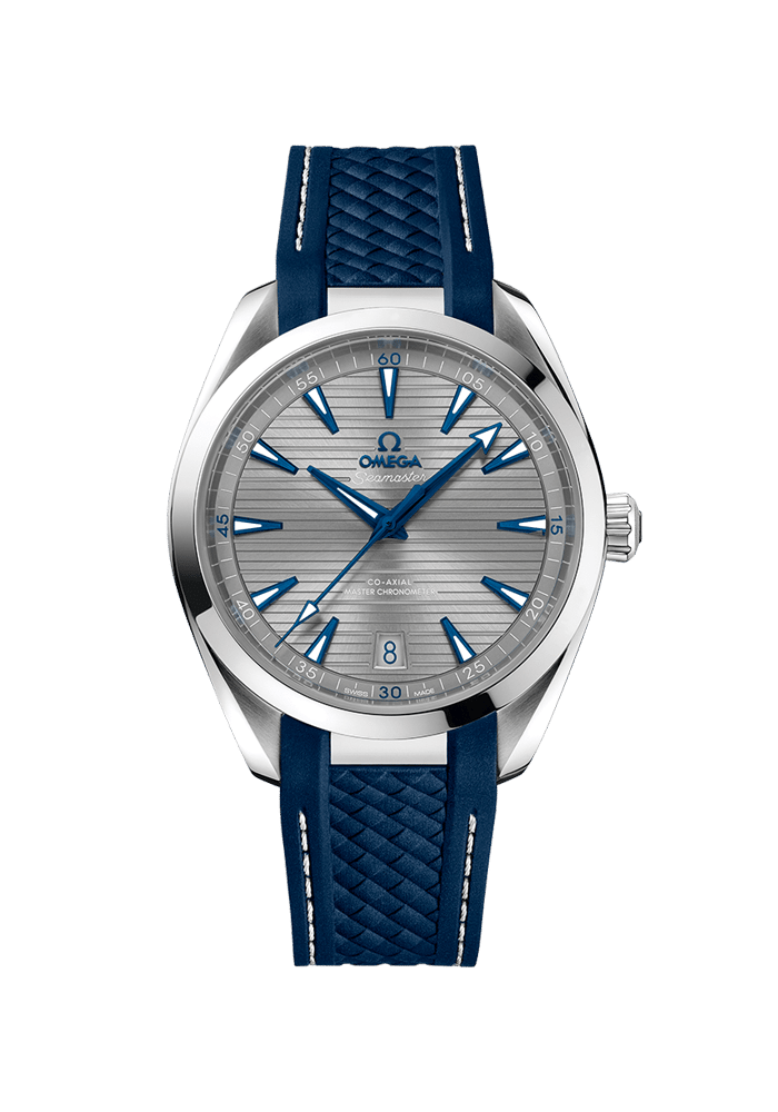 Das blaue Armband aus strukturiertem Kautschuk ist mit einer grauen Unterfütterung sowie einem Glied aus Edelstahl versehen, das es mit dem Gehäuse verbindet. Der Zeitmesser wird von dem OMEGA Master Chronometer Kaliber 8900 angetrieben, das vom Eidgenössischen Institut für Metrologie (METAS) zertifiziert wurde und höchsten Branchenstandards entspricht.
