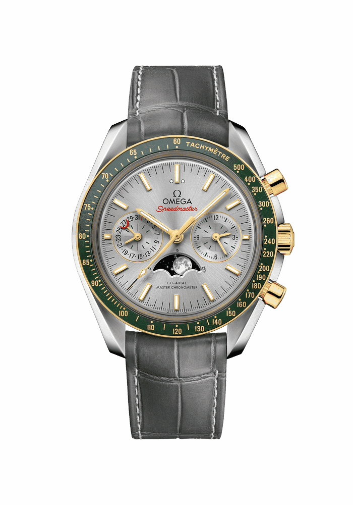 Die Speedmaster, die bei allen sechs Mondmissionen dabei war, gehört zu OMEGAs legendärsten Zeitmessern. In Anlehnung an den Entdeckergeist verfügt diese neue Moonphase über zwei extrem kleine, aber fotorealistische Monde.