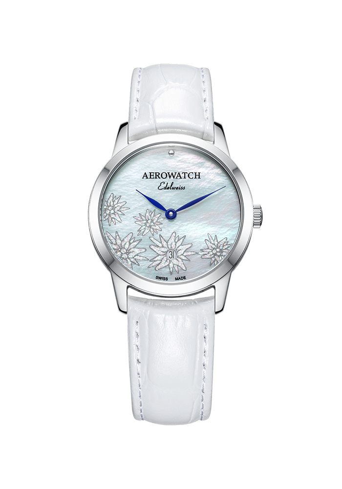 | Zifferblatt | weißes Perlmutt, Edelweiss-Muster |