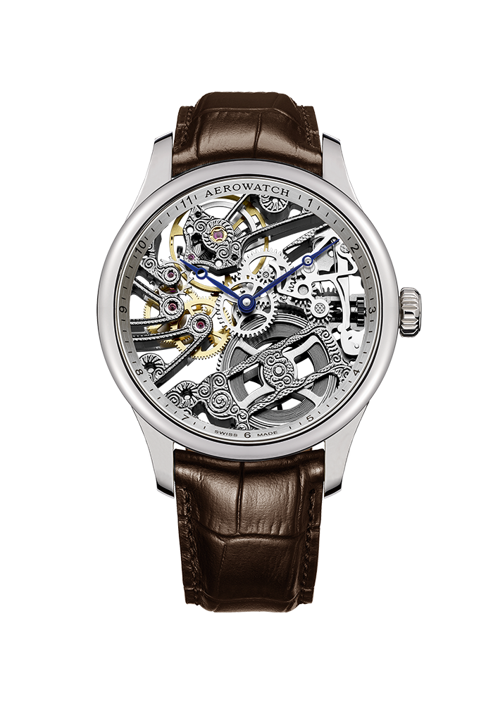Die familiengeführte Uhrenmarke Aerowatch führt die Schweizer Uhrmacherkunst konsequent weiter. Ob Aerowatch Skeleton oder Aerowatch Renaissance Uhrenmodelle – die Kreativität der Uhrenmarke ist gross. Besonders herausragend war die Idee der Skelettuhren: Sie sind nicht nur faszinierend anzusehen, sondern auch eine handwerkliche Meisterleistung. Geradezu Schmuckstücke für das Handgelenk, genau wie auch die Aerowatch Damenuhren, welche überaus feminin in der Linienführung und Farbwahl sind. Für besondere Anlässe aber auch den Businessalltag passt etwa die Aerowatch Day & Night Kollektion perfekt. Die Heritage Uhren sind klassisch im Aussehen, die römischen Ziffern und das Lederband sorgen mit schlichter Eleganz für absoluten Stil. Doch nicht nur im Uhrendesign sind die Schweizer Automatik- und Quarzuhren herausragend, denn die Uhren weisen auch Funktionen wie Mondphase oder Chronograph auf. In Summe sind Form und Funktion das Zeugnis der hohen Kunst des heutigen Uhrmacherhandwerks von Aerowatch, das Sie bei Bijouterie Bläuer kennenlernen können.