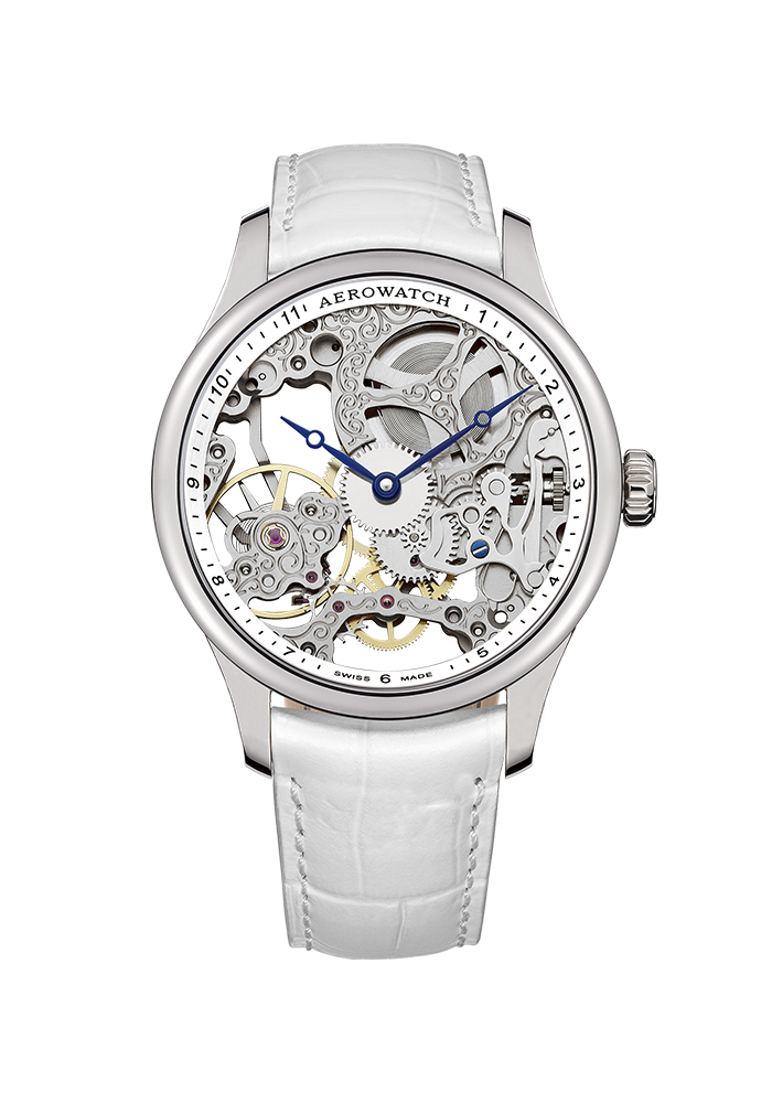 Die familiengeführte Uhrenmarke Aerowatch führt die Schweizer Uhrmacherkunst konsequent weiter. Ob Aerowatch Skeleton oder Aerowatch Renaissance Uhrenmodelle – die Kreativität der Uhrenmarke ist gross. Besonders herausragend war die Idee der Skelettuhren: Sie sind nicht nur faszinierend anzusehen, sondern auch eine handwerkliche Meisterleistung. Geradezu Schmuckstücke für das Handgelenk, genau wie auch die Aerowatch Damenuhren, welche überaus feminin in der Linienführung und Farbwahl sind. Für besondere Anlässe aber auch den Businessalltag passt etwa die Aerowatch Day & Night Kollektion perfekt. Die Heritage Uhren sind klassisch im Aussehen, die römischen Ziffern und das Lederband sorgen mit schlichter Eleganz für absoluten Stil. Doch nicht nur im Uhrendesign sind die Schweizer Automatik- und Quarzuhren herausragend, denn die Uhren weisen auch Funktionen wie Mondphase oder Chronograph auf. In Summe sind Form und Funktion das Zeugnis der hohen Kunst des heutigen Uhrmacherhandwerks von Aerowatch, das Sie bei Bijouterie Bläuer kennenlernen können.