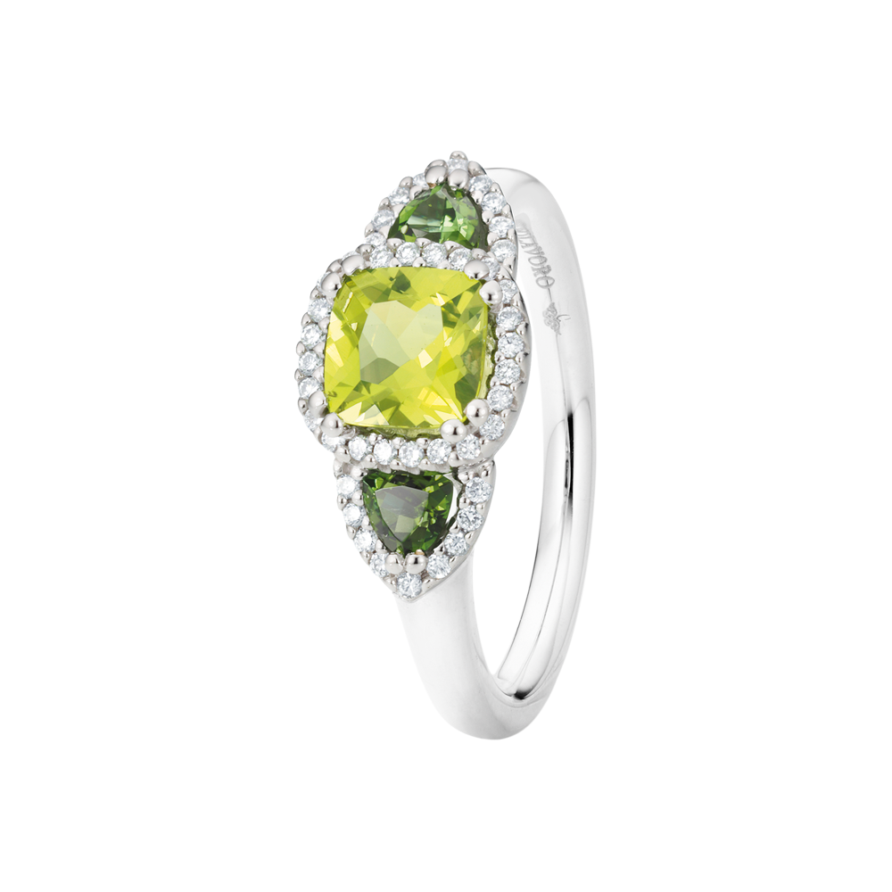 | Farbsteine | Peridot antik 6.0 x 6.0 mm ca. 1.10ct, Turmalin grün Trillion 3.5 x 3.5 mm ca. 0.50ct |