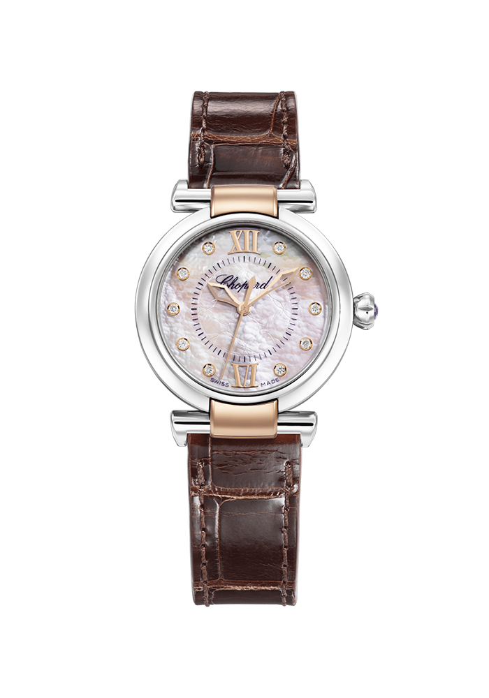 | Zifferblatt | Perlmutt und weiße Diamanten |