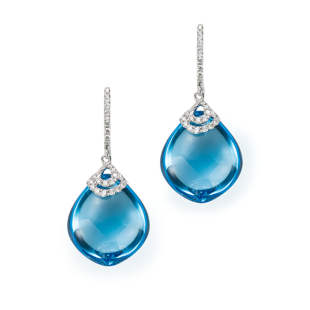Ohrhänger in Weissgold 750 mit blauen Topasen und Brillanten