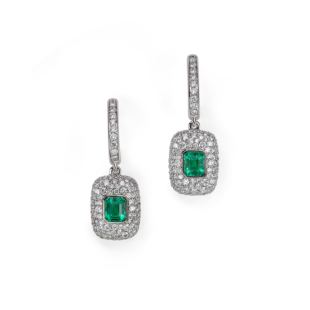 Ohrhänger in Weissgold 750 mit Smaragden und Brillanten