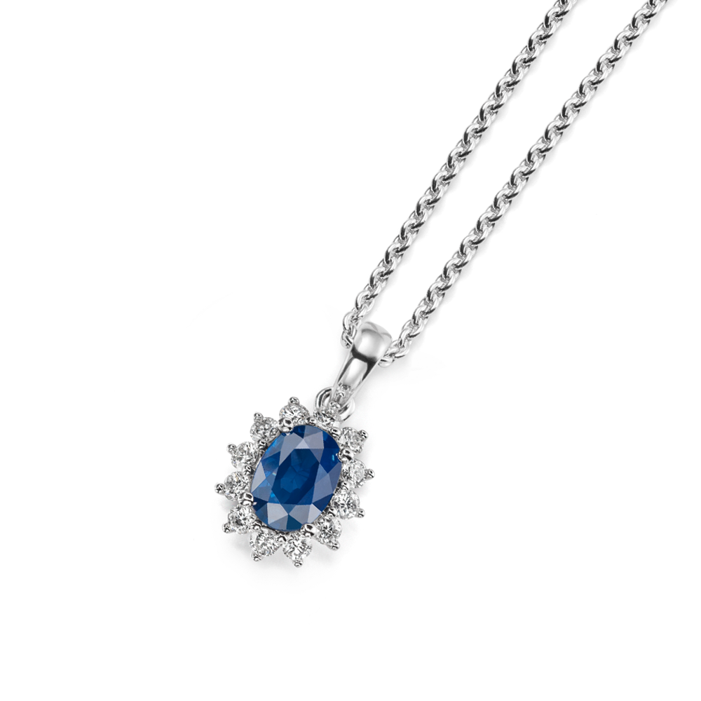 Anhänger mit Kette in Weissgold 750 mit Saphir und Brillanten
