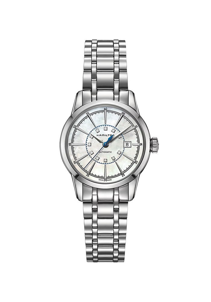 Bereits in über 400 Kinofilmen traten Uhrenmodelle von Hamilton auf. Diese enge Verbundenheit mit dem Hollywood Filmbusiness ist auch in den Uhren der Kollektion American Classics zu sehen: elegante Herrenuhren und glamouröse Hamilton Damenuhren. Die Hamilton Quarzuhren der Serie Broadway zelebrieren die Verbundenheit mit der geradlinigen Architektur von Manhattan. Eine Reminiszenz an die amerikanische Jazzlandschaft ist die Hamilton Jazzmaster Serie. Die Fliegeruhren versammelt Hamilton unter den Kollektionsnamen Hamilton Khaki Field, Hamilton Khaki Aviation und Hamilton Khaki Navy. Während die erste durch robuste Machart und elegantes Design überzeugt, weist Hamilton Khaki Aviation dezidierte Pilotenfunktionen in den Automatikuhren auf und Navy vereint Funktionen für Unterwasseraktivitäten. Die Hamilton Ventura ist bestimmt das ungewöhnlichste aller Modelle, weist es doch ein dreieckiges Gehäuse auf. Das Originalmodell stammt aus dem Jahr 1957, das als erste batteriebetriebene elektrische Uhr in die Geschichte einging. In allen von der amerikanischen Kultur inspirierten Uhrenmodellen von Hamilton tickt Schweizer Präzision. Entdecken Sie die ikonischen Uhren bei Bijouterie Bläuter in Thun!