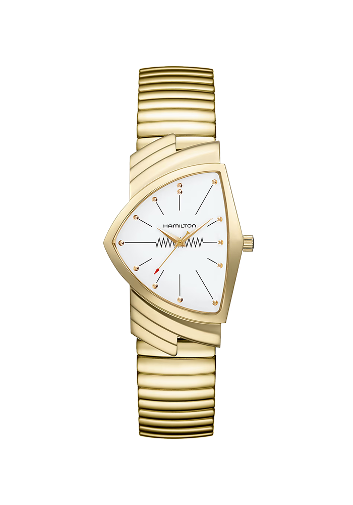Bereits in über 400 Kinofilmen traten Uhrenmodelle von Hamilton auf. Diese enge Verbundenheit mit dem Hollywood Filmbusiness ist auch in den Uhren der Kollektion American Classics zu sehen: elegante Herrenuhren und glamouröse Hamilton Damenuhren. Die Hamilton Quarzuhren der Serie Broadway zelebrieren die Verbundenheit mit der geradlinigen Architektur von Manhattan. Eine Reminiszenz an die amerikanische Jazzlandschaft ist die Hamilton Jazzmaster Serie. Die Fliegeruhren versammelt Hamilton unter den Kollektionsnamen Hamilton Khaki Field, Hamilton Khaki Aviation und Hamilton Khaki Navy. Während die erste durch robuste Machart und elegantes Design überzeugt, weist Hamilton Khaki Aviation dezidierte Pilotenfunktionen in den Automatikuhren auf und Navy vereint Funktionen für Unterwasseraktivitäten. Die Hamilton Ventura ist bestimmt das ungewöhnlichste aller Modelle, weist es doch ein dreieckiges Gehäuse auf. Das Originalmodell stammt aus dem Jahr 1957, das als erste batteriebetriebene elektrische Uhr in die Geschichte einging. In allen von der amerikanischen Kultur inspirierten Uhrenmodellen von Hamilton tickt Schweizer Präzision. Entdecken Sie die ikonischen Uhren bei Bijouterie Bläuter in Thun!