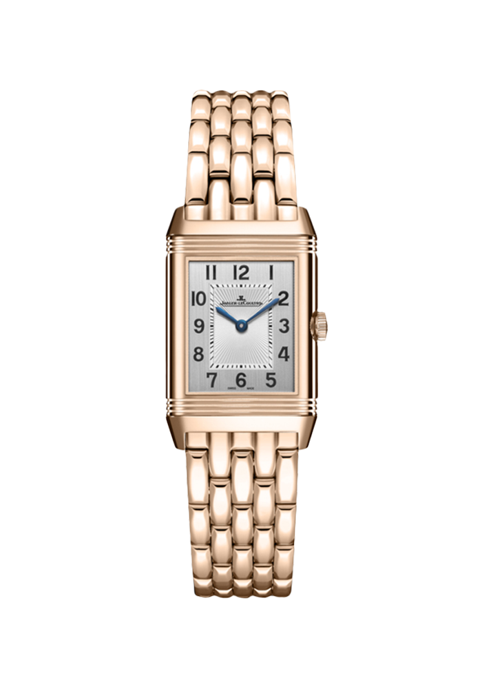 Die kostbare, feminine, verführerische Reverso Classic Small Duetto mit ihren Veredelungen aus Rotgold und Diamanten bietet ihrer Trägerin zwei Gesichter. Ein wahres Schmuckstück, das Liebhaberinnen kostbarer und zeitloser Dinger begeistern wird.