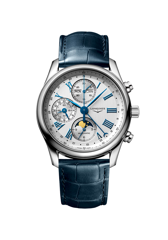 | Funktionen | Chronograph, Mondphase, Datum, Wochentag, Kleine Sekunde, Monatsanzeige |