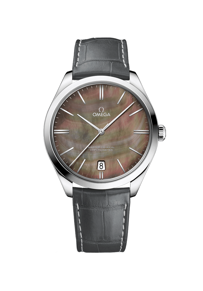 Das 40-mm-Gehäuse aus Weißgold ist mit einem grauen Lederarmband mit grauer Absteppung sowie einer Schließe aus poliertem 18 K Weißgold versehen. Dieser Zeitmesser wird vom Master Co-Axial Chronometer Kaliber 8511 angetrieben.